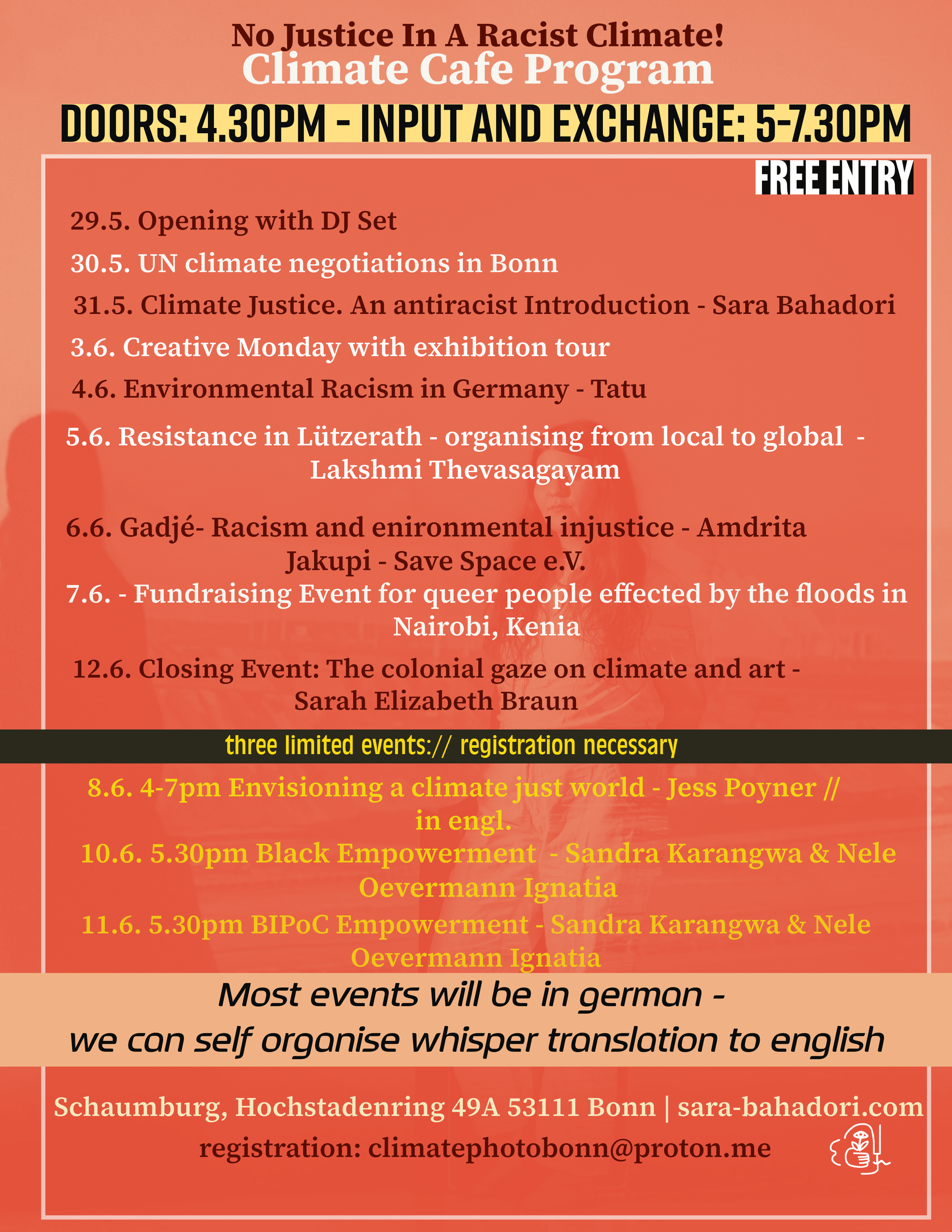 Over the two weeks of the exhibition duration - there was a programme of climate cafes with top tier feminist experts from the deolonial wing of the German climate movement: